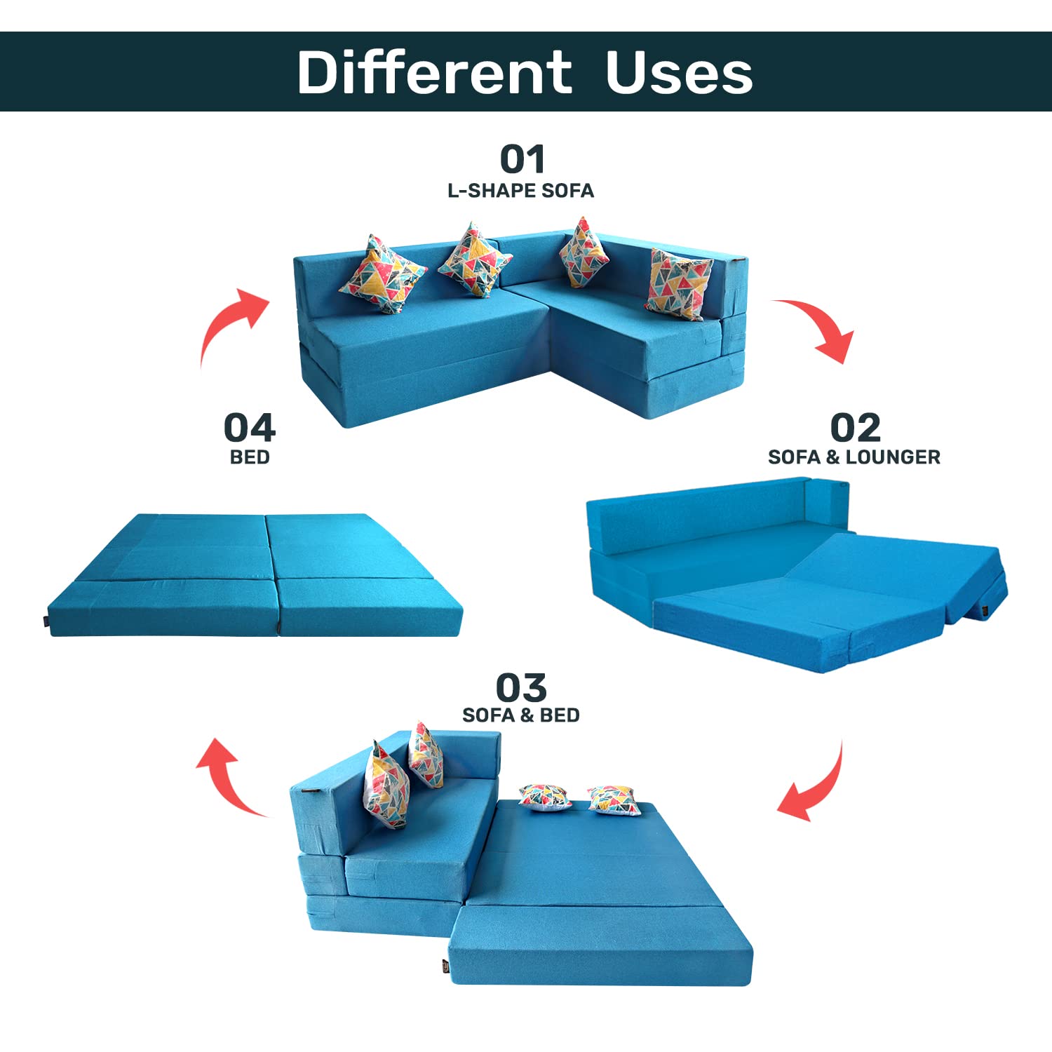 • Care Instructions:- Do not roll or fold the product. This may lead to product losing its shape. Do no keep any heavy objects or sit on the edges of the sofa bed. Place the sofa on an even sturdy surface.