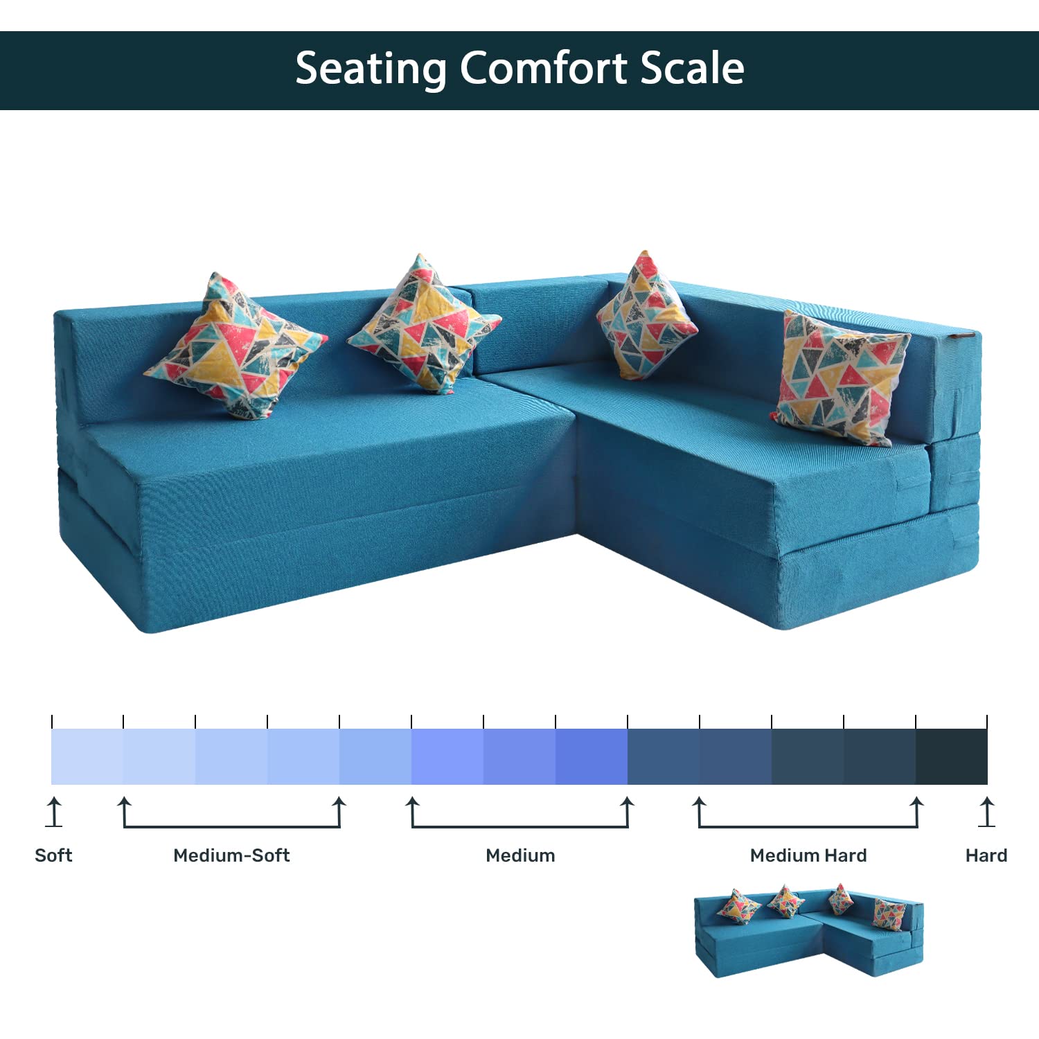 • Dimensions:-Long side sofa: Width: 78 inches, Depth: 22 inches, Height: 16inches | Shorter extension: Width: 60inches, Death: 22 inches, Height: 16 inches; Total Sofa Height: 28inches | Mattress size: 72x60x8inches and 72x48x8 inches
