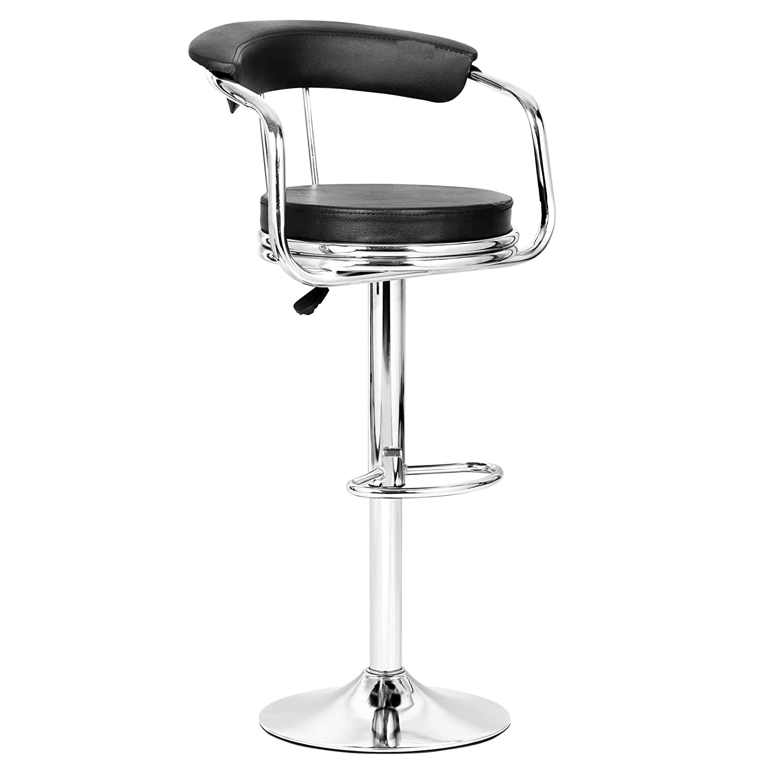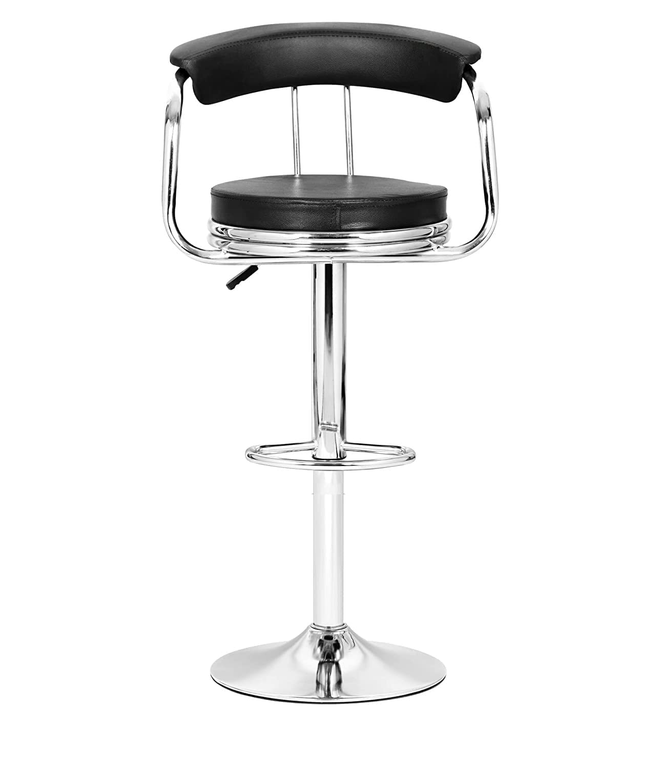 • Stable & sturdy bar stool - With a built in 360 degree swivel | High density foam upholstered in leatherette | Constructed with polished chrome base and footrest.