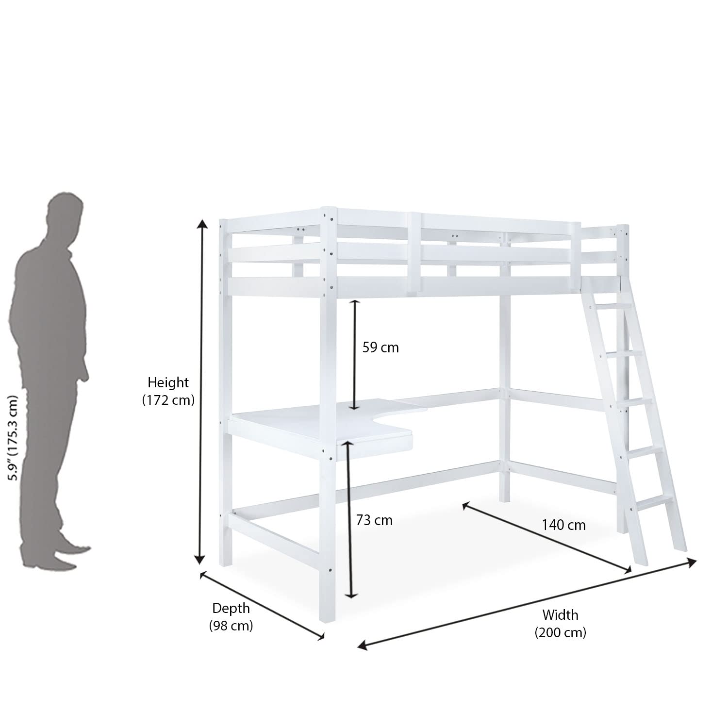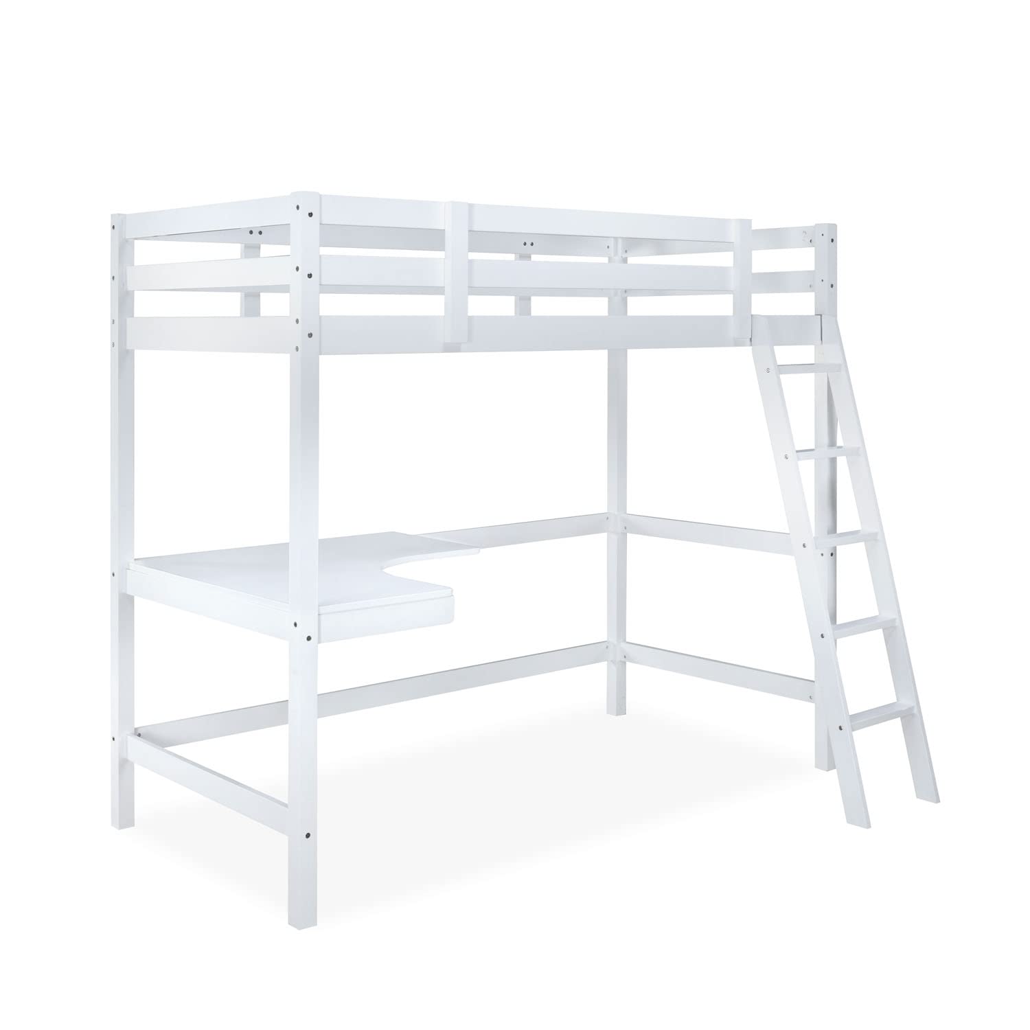 Solid Wood Bunk Bed with Study Table & Side Ladder for Kids (White)
