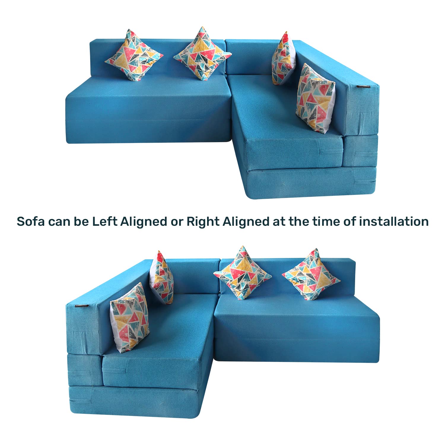 • Dimensions:-Long side sofa: Width: 78 inches, Depth: 22 inches, Height: 16inches | Shorter extension: Width: 60inches, Death: 22 inches, Height: 16 inches; Total Sofa Height: 28inches | Mattress size: 72x60x8inches and 72x48x8 inches