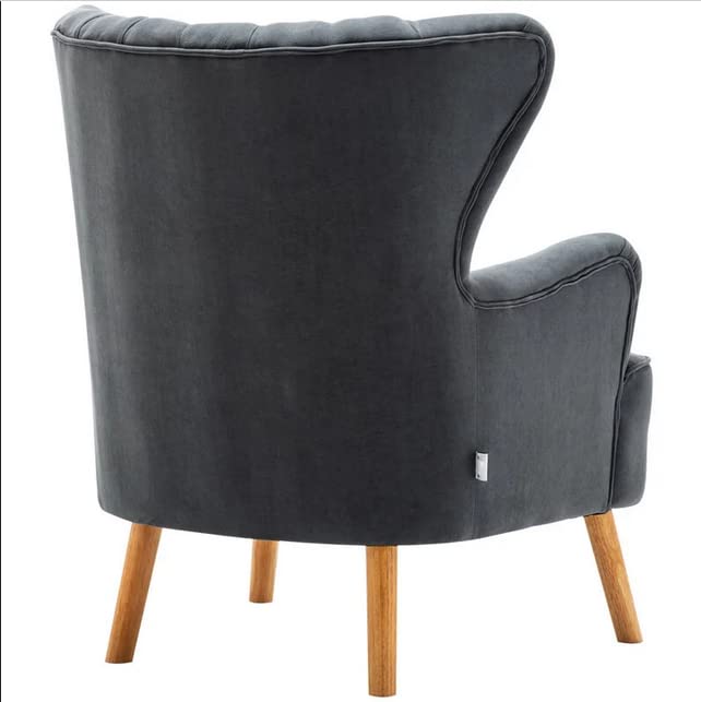 Wing Chair with Ottoman for Living Room | Luxury Rest Arm Chair for Bedroom | Single Seater Sofa for Home | Velvet Fabric - Dark Gray Colour