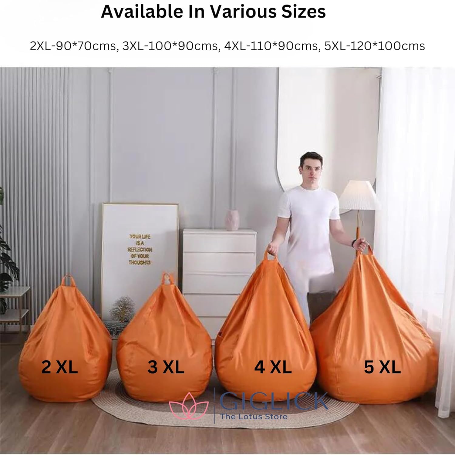 • ✅ 【INDIAN QUALITY】⭐ Designed and made in INDIA, our luxury bean bags are made in India with leatherette fabric with Over Locked Stitching and Double Protected with Velcro and Zipper for safety, XXXL Size: 90X90X110 CM. Available in different colours to accommodate your preference.
