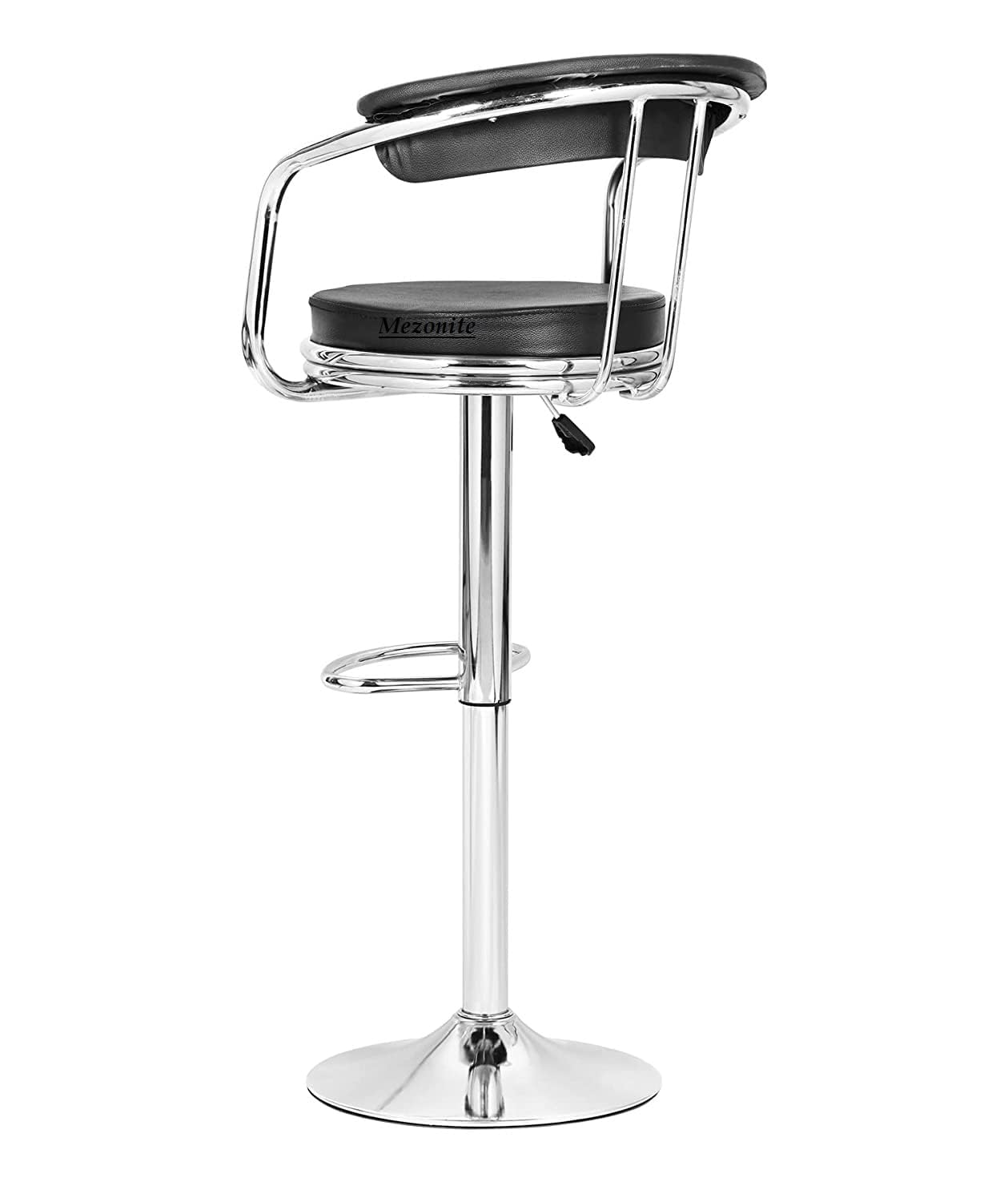 • Stable & sturdy bar stool - With a built in 360 degree swivel | High density foam upholstered in leatherette | Constructed with polished chrome base and footrest.
