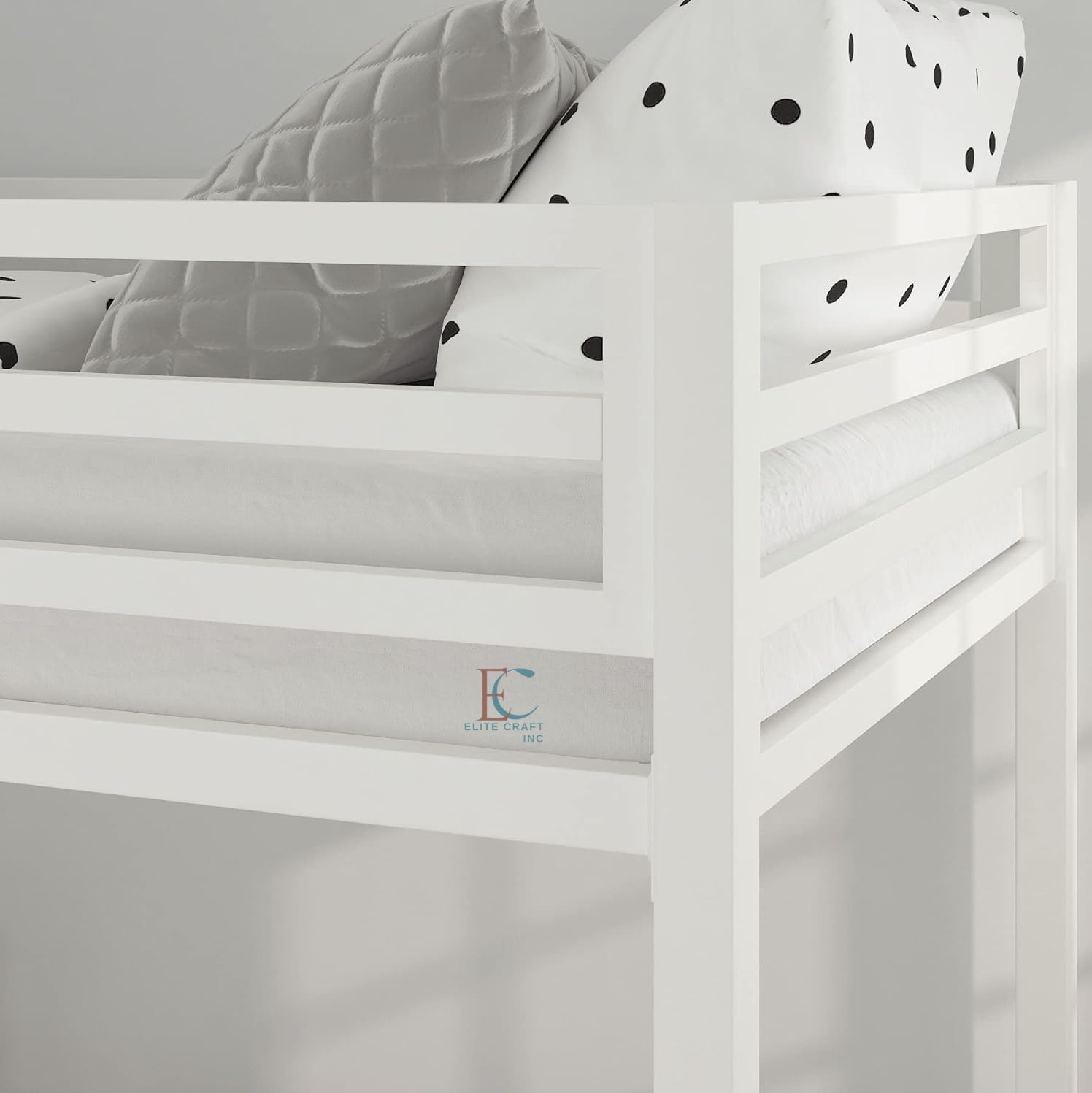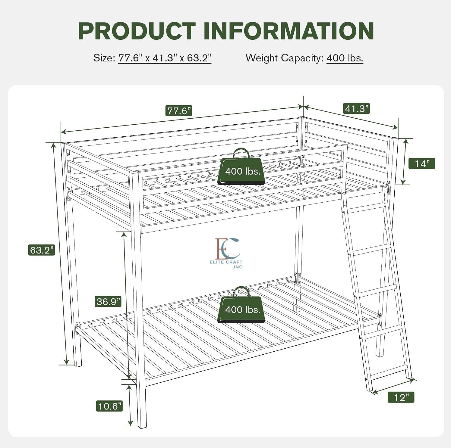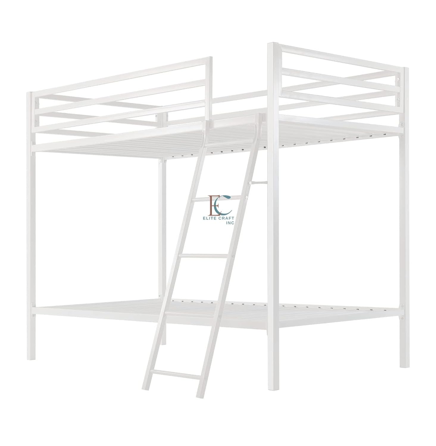 Bunk Bed Twin Over Twin Size with Ladder, Metal Bed Frame with Sturdy Guardrail, Space-Saving Design, No Box Spring Needed, Noise Free, White