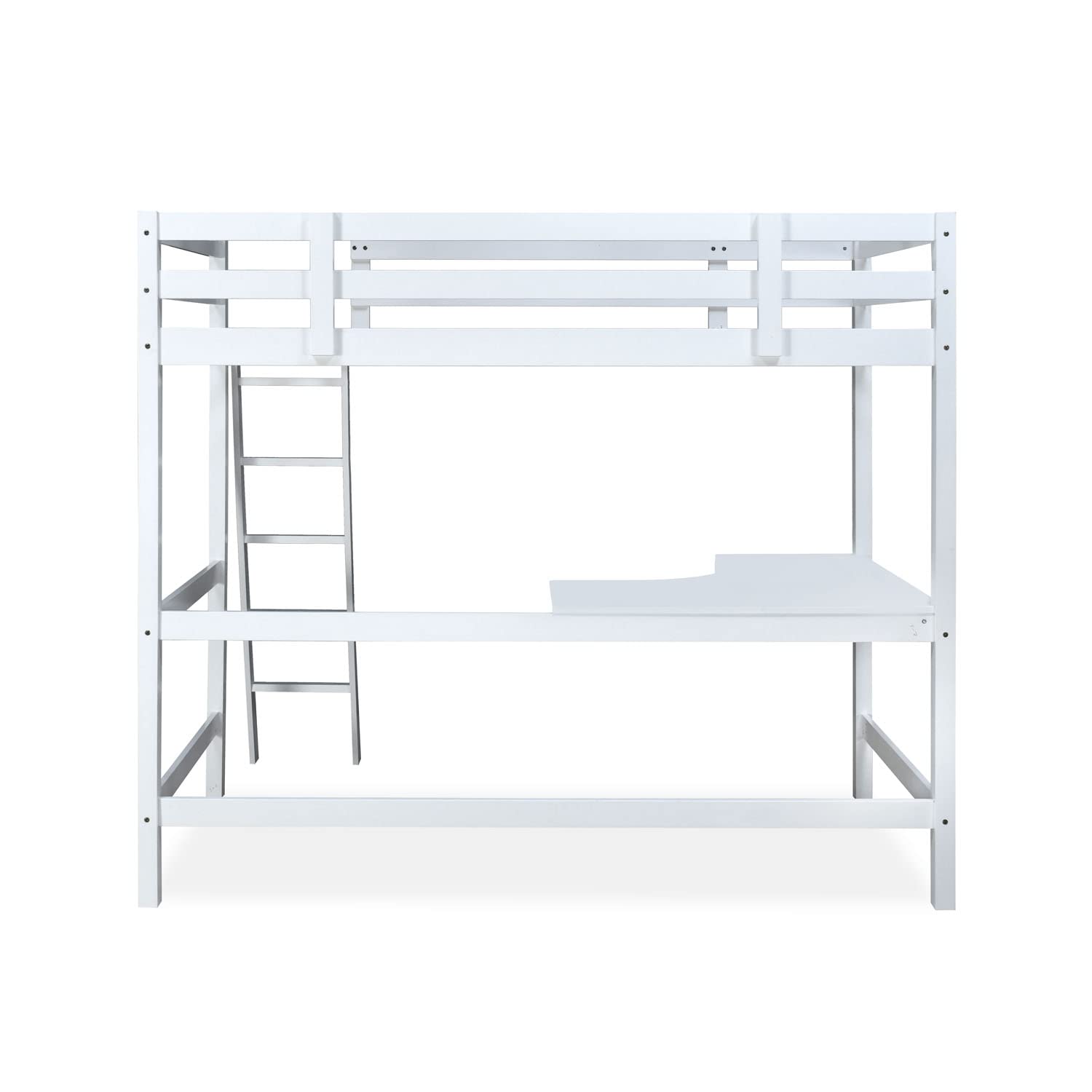 Solid Wood Bunk Bed with Study Table & Side Ladder for Kids (White)