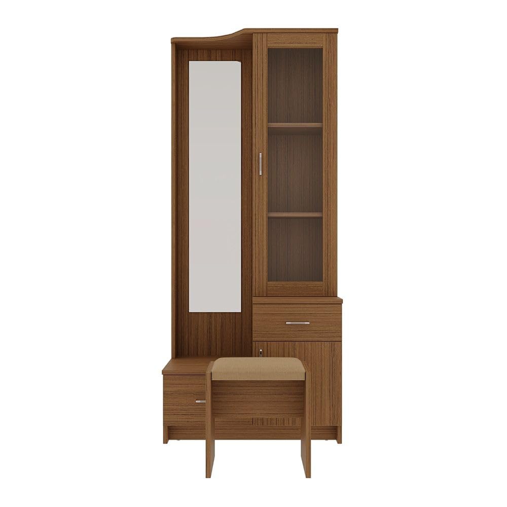 Dressing Table, Dressing Table with Mirror and Storage, Dressing Table with Stool (Engineered Wood - Columbian Walnut, Cetus)