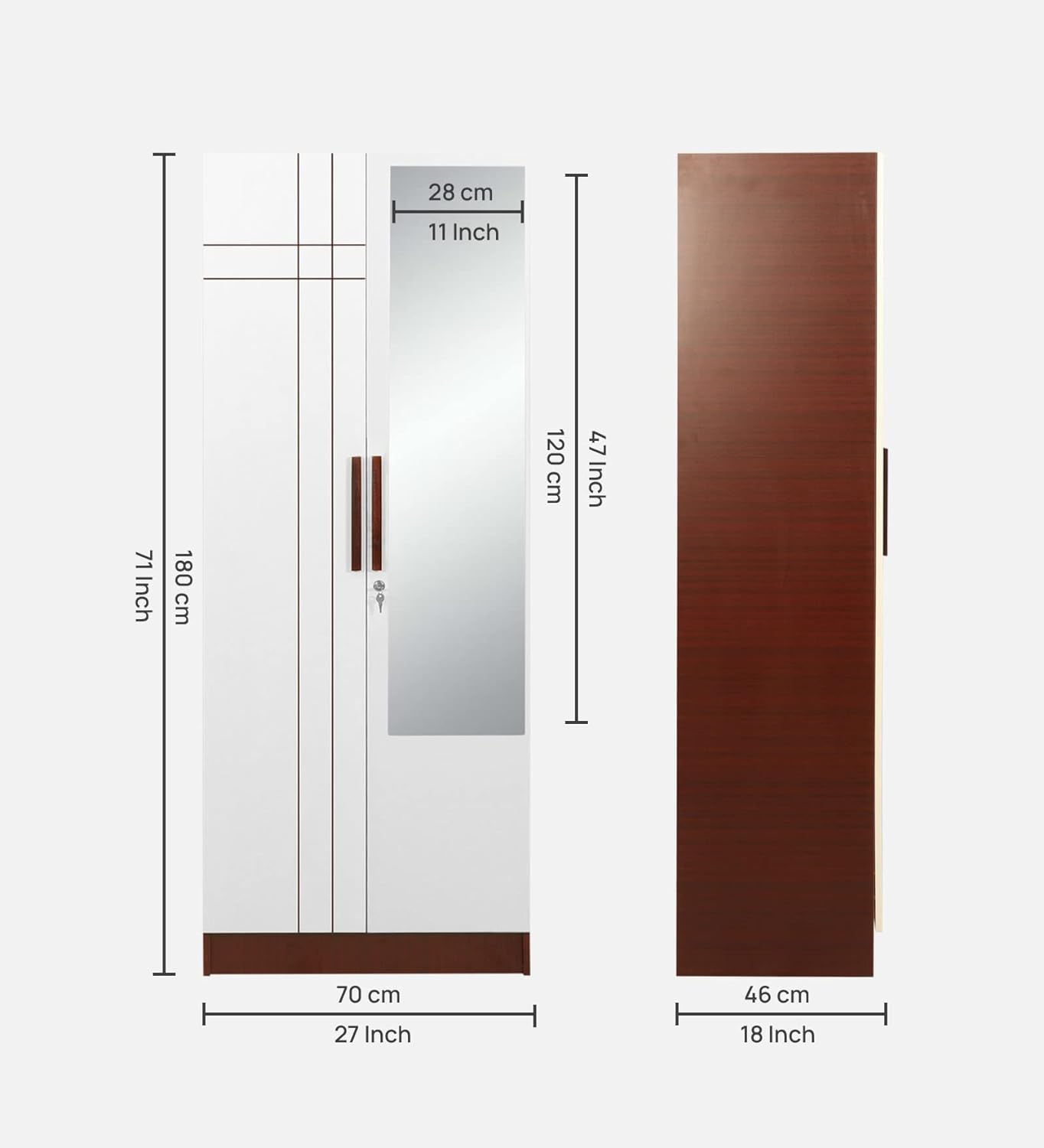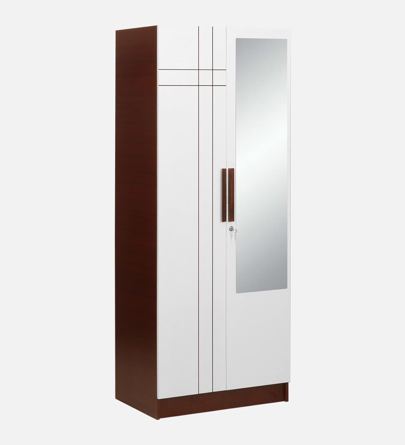 2 Door Wardrobe | Engineered Wood Wardrobe with Mirror & Locker, Sapele & White Finish